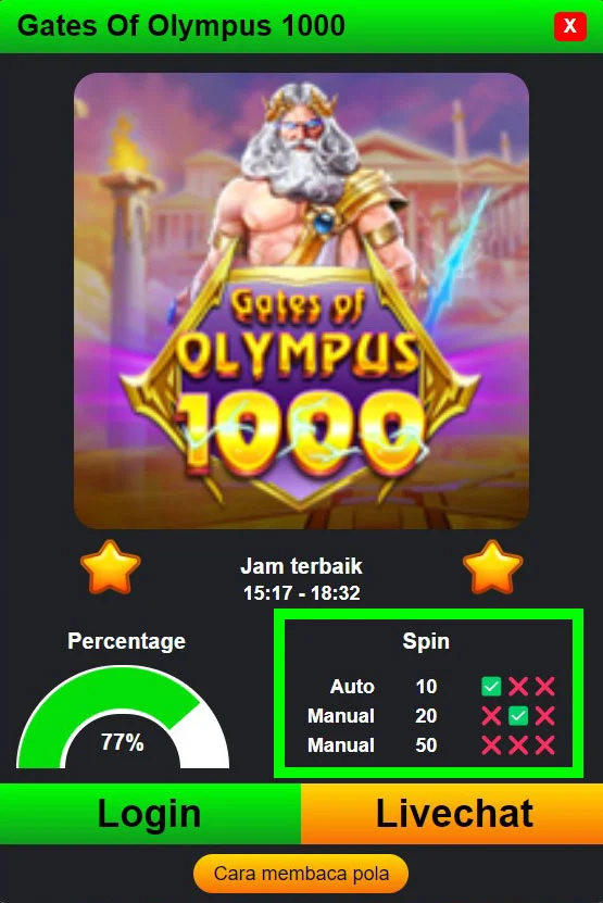 Dari gambar di atas, bisa dilihat ada pola gacor di bagian "Spin" yang tersedia untuk dimainkan.
